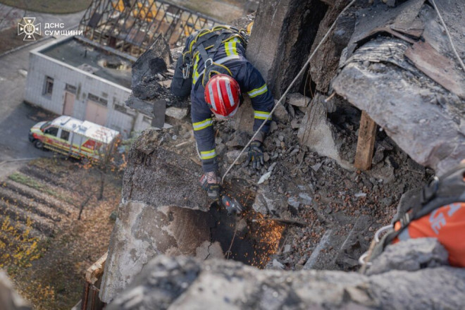 Впродовж дня 31 жовтня співробітники ДСНС проводили аварійно-відновлювальні роботи на місці нічного ворожого удару по багатоквартирному житловому будинку.
