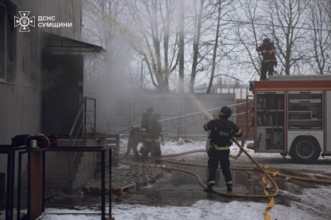 У Сумах рятувальники ліквідували пожежу на об’єкті цивільної інфраструктури, що виникла внаслідок ворожої атаки.