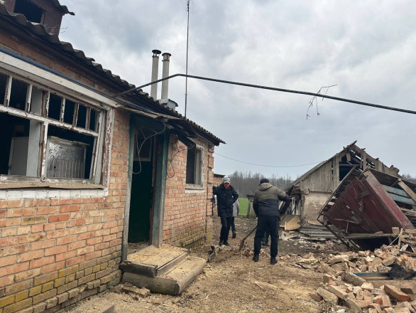 За словами Володимира Онопрієнка, російські війська тричі вдарили по селу безпілотниками. Пошкоджені також сусідні будинки.
