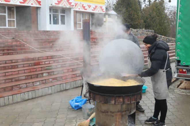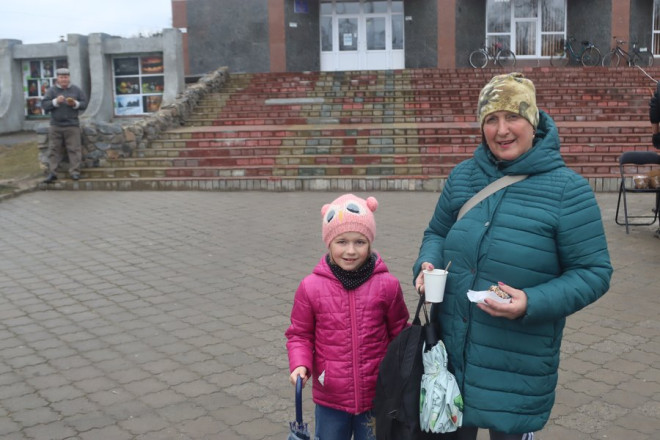 "Потім Черкаси, Чернігівська, Сумська. Ми пригощаємо людей у свої тарілочки, а дуже багато людей приходять із лоточками. Вдома є люди похилого віку чи з інвалідністю — то ми пригощаємо. Вони беруть додому порції".