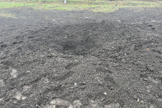 Жінка показала вирву на городі. За її словами, саме сюди впав безпілотник.