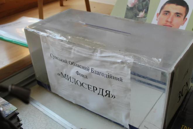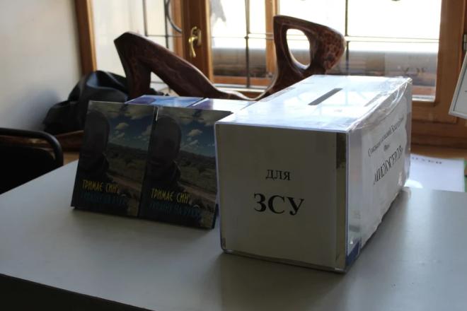 На презентації також збирали кошти для ЗСУ. Благодійні внески можна було залишити у спеціально відведеному ящику від Сумського обласного благодійного фонду «Милосердя».