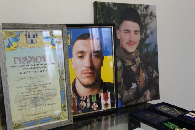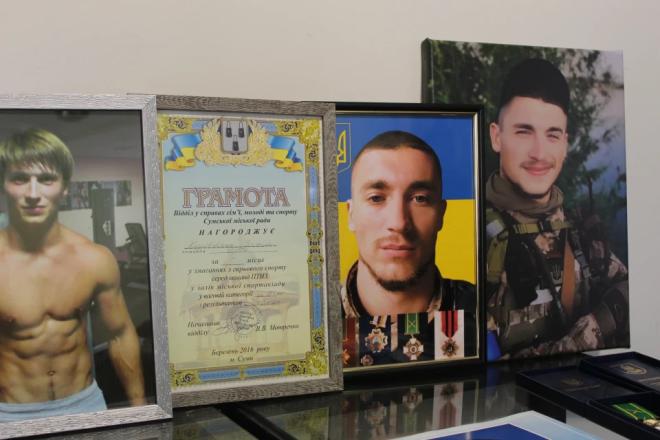 У Сумській міській галереї відбулася презентація книги «Тримає син Україну в руках», присвяченої полеглому воїну Василю «Фантому» Коробейнику. Її авторка – мати військового Валентина Коробейник, яка зібрала спогади про сина.