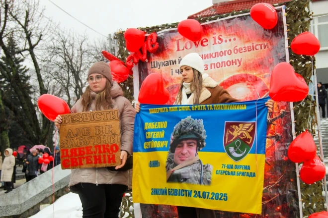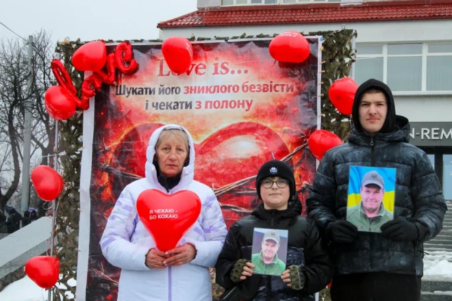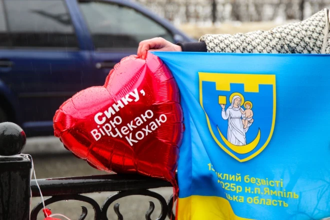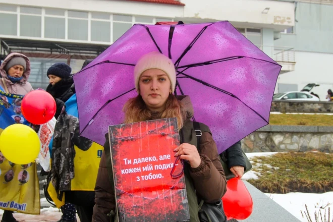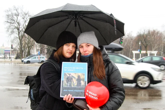 Мокрі долоні тримають портрети. Близько двохсот людей зібралося 14 лютого в Сумах біля фонтану «Садко». Рідні, близькі та небайдужі до долі безвісти зниклих та полонених вийшли на акцію, аби нагадати про тих, хто не досі повернувся додому.