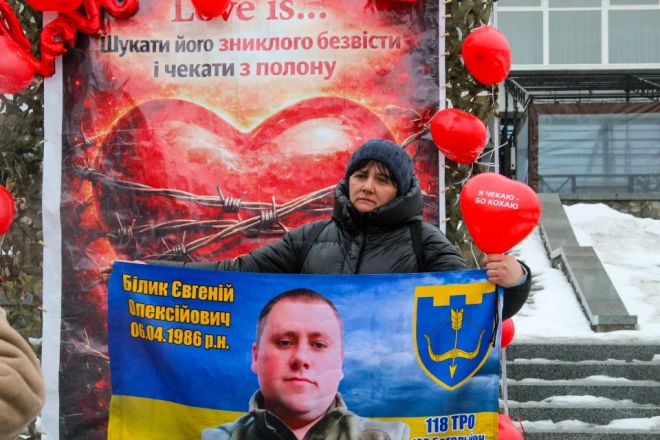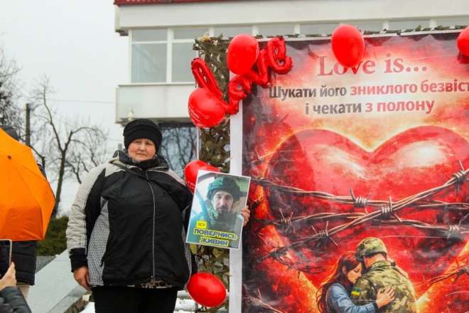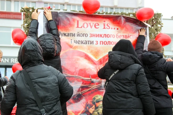 На День святого Валентина учасники заходу принесли тематичні плакати та кульки у формі сердець. Ми зібрали кілька історій тих, хто чекає.