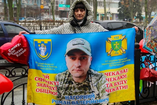 Мати Романа Нагорного також доєдналась до акції. Її син зник безвісти в 2025 році поблизу населеного пункту Ямпіль на Донеччині. Жінка тримає прапор з портретом сина та повітряну кулю у формі серця з надписом: «Синку, вірю, чекаю, кохаю».