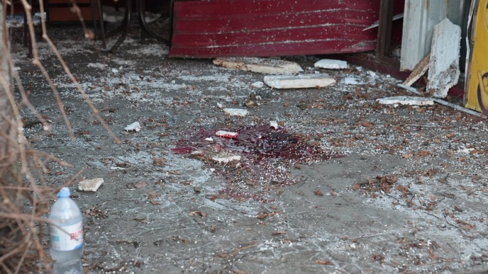 Пан Олег допомагає наводити порядок біля зруйнованого магазину, каже, під час удару знаходився в приміщенні бару.