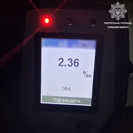 Під час перевірки документів у 41-річного кермувальника патрульні виявили явні ознаки алкогольного сп’яніння. Чоловік не заперечував, що вживав алкогольні напої. Він пройшов огляд на місці зупинки за допомогою приладу Драгер. Результат — 2,36 проміле алкоголю, що майже в 12 разів перевищує допустиму норму.