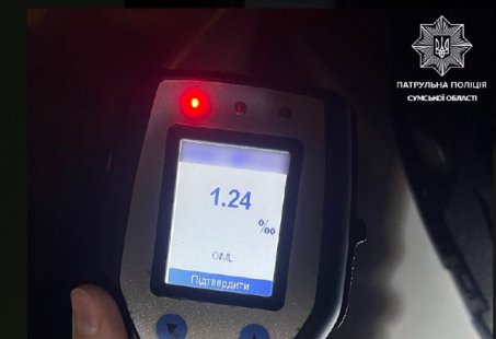 Під час перевірки документів патрульні виявили у 34-річної громадянки ознаки алкогольного сп’яніння. Жінка погодилася пройти огляд на місці зупинки. Результат — 1,24 проміле алкоголю.