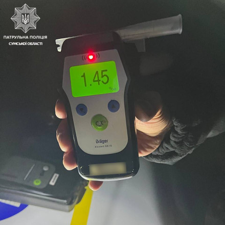 Під час перевірки документів патрульні виявили в 30-річного керманича ознаки алкогольного сп’яніння. Огляд за допомогою алкотестера Драгер, проведений на місці зупинки, показав 1,45 проміле алкоголю. Також інспектори встановили, що чоловік ніколи не отримував водійського посвідчення.