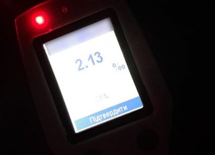 Під час перевірки документів інспектори виявили у керманича явні ознаки алкогольного сп’яніння. Чоловік цього не заперечував та погодився пройти огляд на місці зупинки. Прилад Драгер показав результат — 2,13 проміле алкоголю, що більш ніж у 10 разів перевищує допустиму норму.