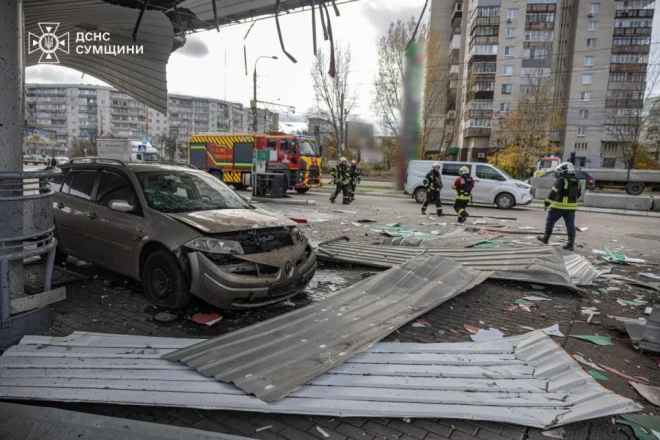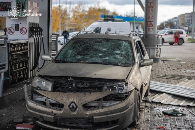 Як повідомили у мерії Сум, близько 11:15 було зафіксовано влучання БпЛА, попередньо типу «Італмас», по одній із автозаправних станцій.