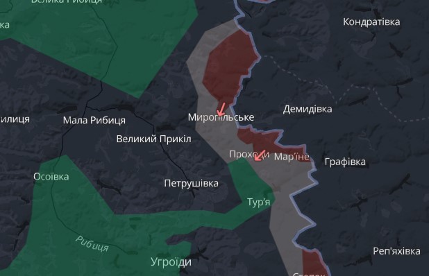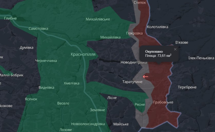 Російські війська просунулися на території Сумської області поблизу сіл Проходи та Таратутине Краснопільської громади, повідомляє DeepState.