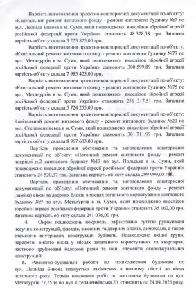 Загальна вартість капітального ремонту будинку №75, разом із виготовленням проєктно-кошторисної документації, — 5 мільйонів 724 тисячі гривень. Загалом ремонт пошкоджених вибухом дев’яти будинків обійдеться бюджету міста у 35 мільйонів 283 тисячі гривень.