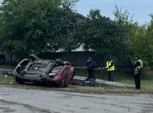 Автомобіль виїхав за межі проїжджої частини, наїхав на бетонні плити і перекинувся.