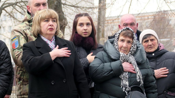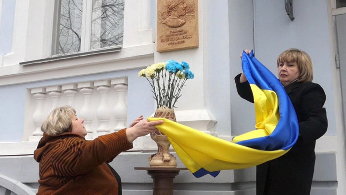 У Глухові на Сумщині відкрили меморіальну дошку загиблому захиснику Юрію Коваленку. Фото: Суспільне Суми