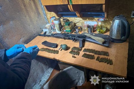 Під час проведення санкціонованого обшуку поліцейські виявили та вилучили автомат АК-74 із магазинами, пістолет ПМ, осколково-наступальну гранату, а також понад 140 патронів різного калібру. Згідно з висновком експерта, вилучений пістолет є придатним до стрільби.