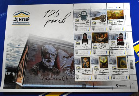 У поштовому блоці дев’ять марок, на кожній – світлина найцінніших експонатів з фондової колекції нашого краєзнавчого музею. Поштовий знак на конверті містить символіку музею та його назву.