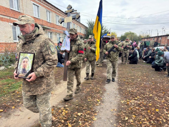 Мужнього оборонця України Сергія Банькодуда провели в останню путь з усіма військовими почестями, спочиватиме він на кладовищі села Косівщина.