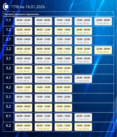 У неділю, 18 січня, на Сумщині діятимуть графіки погодинних відключень відповідно до команди НЕК “Укренерго”.
