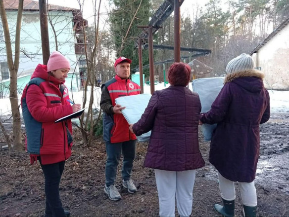 Фахівці Червоного хреста роздають будматеріали мешканцям Шостки. Микола Нога