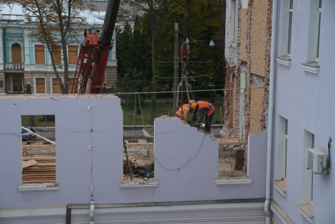 Іншу частину корпусу, що зазнала менших пошкоджень, уже відновили, розповідає керівниця координаційного центру гуманітарної політики СумДУ Марія Мінченко.