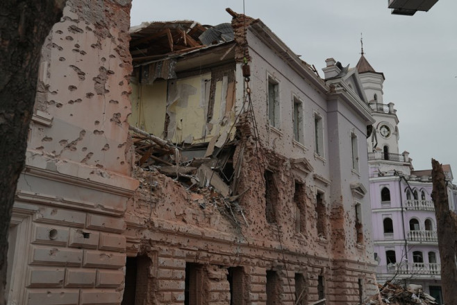 Ще один снаряд влучив у приміщення Конгрес-Центру СумДУ, за кілька десятків метрів звідси.