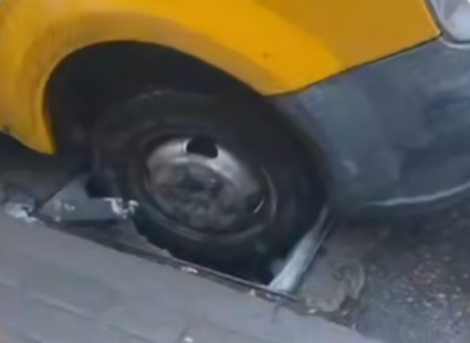 Сьогодні вранці у Сумах маршрутка провалила решітку зливової каналізації.