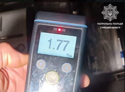 Чоловіка патрульні зупинили. І з перших хвилин спілкування у 37-річного керманича поліцейські виявили ознаки алкогольного сп’яніння. Чоловік пройшов огляд на місці зупинки. Прилад Драгер показав позитивний результат — 1, 77 проміле алкоголю.