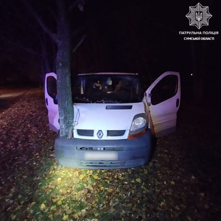Прибувши на місце події, інспектори встановили, що 55-річний водій автомобіля Renault Trafic, не впоравшись із керуванням та не врахувавши дорожню обстановку, здійснив наїзд на дерево.