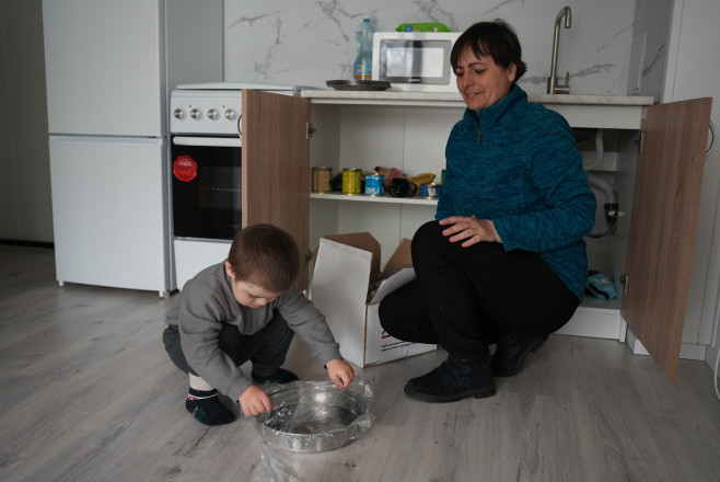 Ще одна переселенка — Тамара Гром із Миропілля — виїхала звідти три роки тому разом із онуком. За цей час довелося змінити п'ять квартир. Коли отримала підтвердження заявки на проживання в модульному містечку, зраділа.