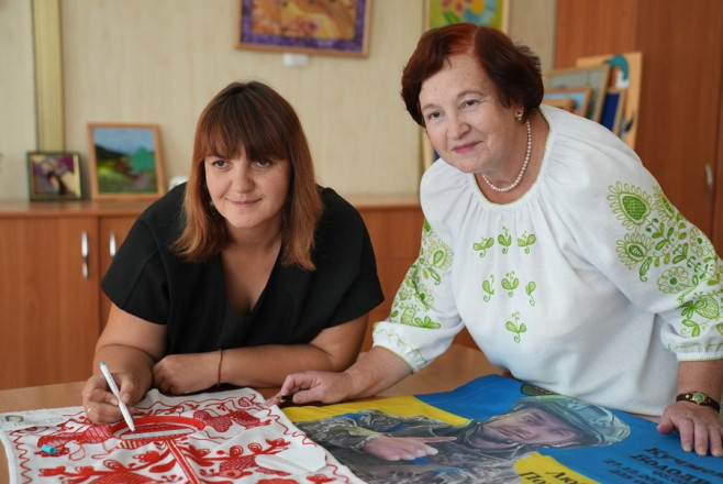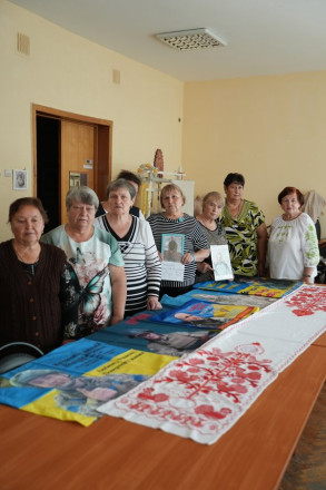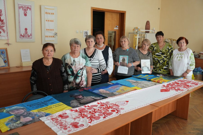 "Моєї роботи в цьому рушнику мало. Ми в перший день прийшли з донькою і невісткою, вони вишивали багато, донька й додому брала шила. Ми 14 місяців не бачимо й не чуємо сина. Він зник безвісти в районі Роздолівки Бахмутського району. Ми його всі чекаємо", — сказала Катерина Коваленко.