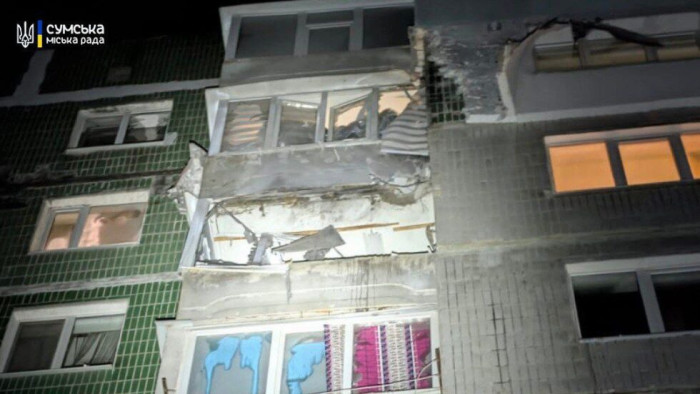 На одному з місць удару пошкоджено 5 балконних рам та близько 10 вікон.