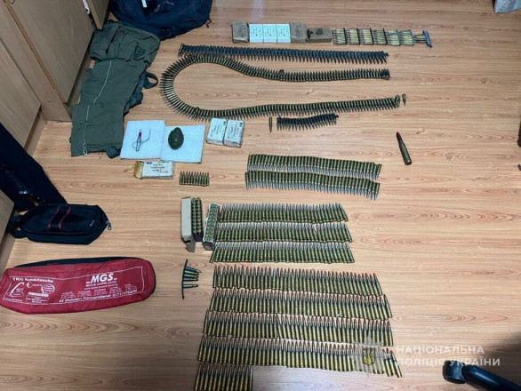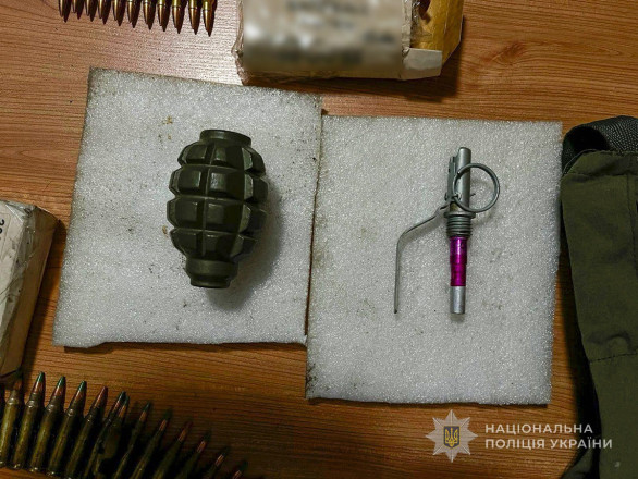 Під час санкціонованого обшуку поліцейські вилучили корпус ручної гранати типу Ф-1 із запалом, а також понад п’ятсот набоїв калібру 7,62 мм, які, згідно з висновками експертів, є бойовими припасами та придатні до використання.