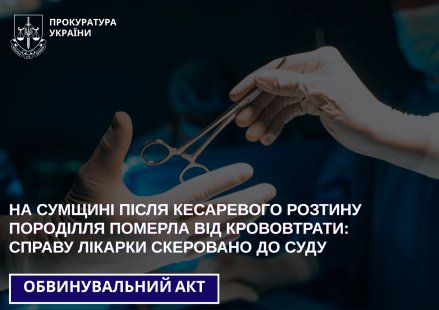Ювенальними прокурорами Окружної прокуратури міста Суми затверджено та направлено до суду обвинувальний акт стосовно лікарки акушер-гінеколога місцевого перинатального центру.