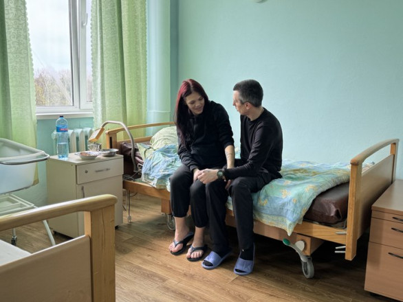Олег і Ніна з Івано-Франківська, чоловік військовослужбовець, проходить службу на Сумщині. Жінка каже, не очікувала, що народжуватиме далеко від дому: “Я приїхала з Івано-Франківська до чоловіка, того що його забирали два місяці тому і ми не бачилися, а те, як ми день в день на протязі цілого року звикли бути разом і страх спрацював і я сіла в поїзд і просто поїхала до чоловіка. Ми планували все-таки поїхати додому і родити дома. Ну, так сталося, що ми зупинилися тут”.