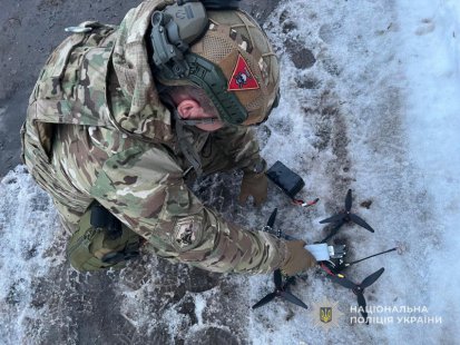 Безпілотний літальний апарат квадрокоптерного типу, чоловік помітив на снігу, неподалік від дороги. Прибувши за вказаними координатами вибухотехніки поліції оглянули БпЛА, відокремили його бойову частину та вивезли її на спеціальний майданчик для знищення шляхом контрольованого підриву.