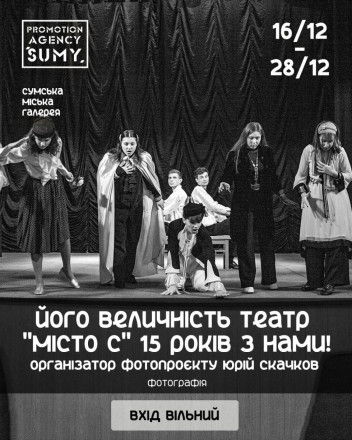 Агенція промоції “Суми” запрошує до Сумської міської галереї на відкриття виставки, присвяченої 15 річчю театру «Місто С».