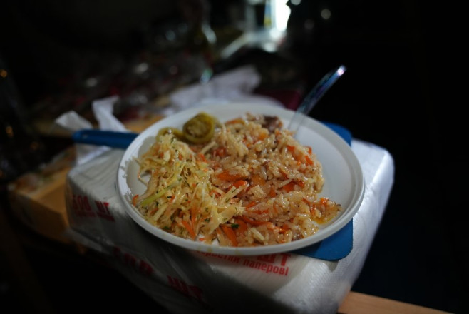 "Нут, родзинки, справжній плов. Десь порцій 20 буде. 120 грн за миску", — сказала пані Ірина, учасниця заходу.