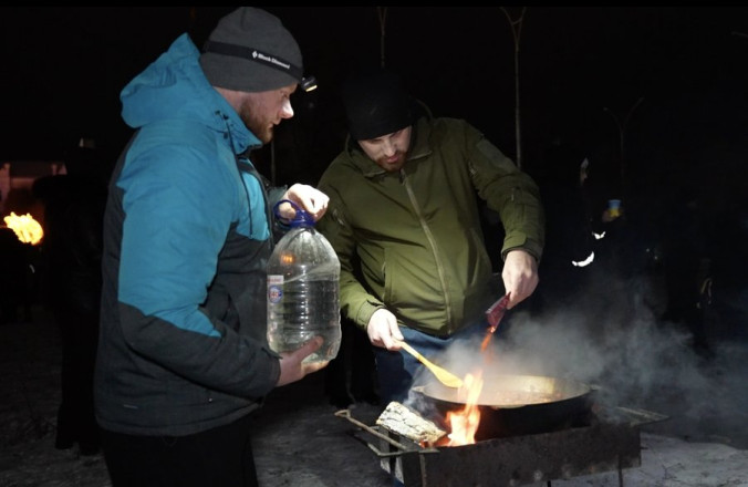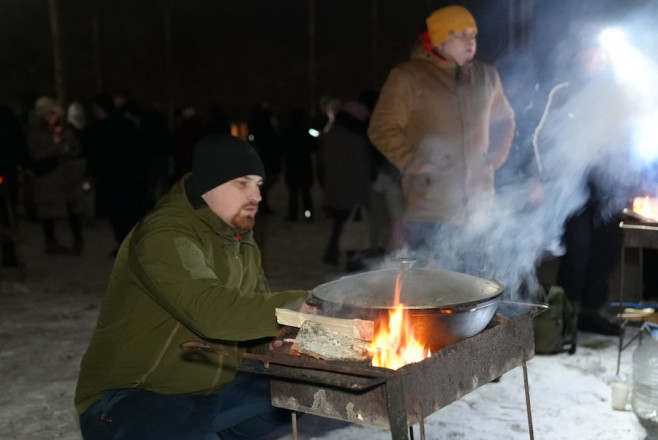 Неподалік варять український бограч. Страву, каже учасник заходу Денис, готуватиме не менше двох годин поки м’ясо не стане м’яким.