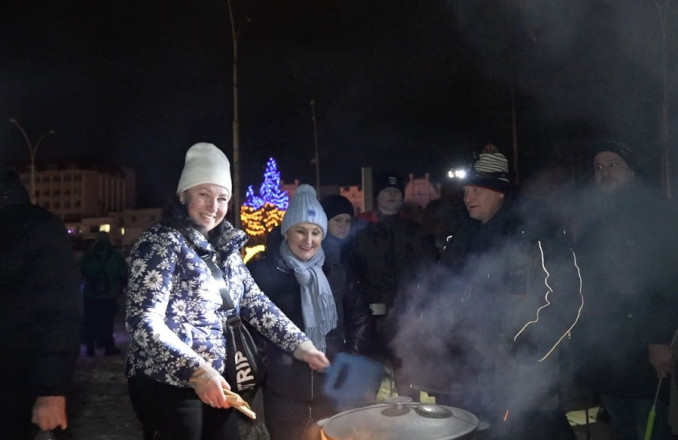 Ще одна святкова локація — підземний перехід біля фонтану Садко. Там місцева підприємиця пропонує солодощі власного приготування – пряники розписні. Говорить, відвідувачів було багато, майже всі смаколики розібрали.