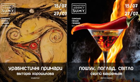 У вівторок, 15 липня, Сумська міська галерея (вул. Соборна, 27) запрошує сум’ян та гостей міста одразу на дві виставки. Відвідувачі зможуть познайомитися з творчістю фотохудожника Сергія Бекреньова та художниці з Харкова Вікторії Хорошилової. Вхід на обидві виставки вільний.