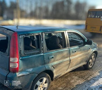 Пошкоджено автомобіль, який рухався дорогою, а також близько 10 вікон у будівлі, що розташована поруч, повідомили в мерії Сум.