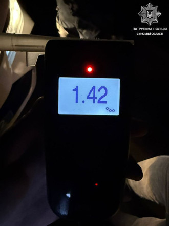 Патрульні зупинили транспортний засіб KIA Sorento за порушення комендантської години. Під час перевірки документів інспектори виявили у водія явні ознаки алкогольного сп’яніння. Огляд на місці зупинки за допомогою приладу Драгер підтвердив цей факт. Результат — 1,42 проміле алкоголю, що більш ніж у 7 разів перевищує допустиму норму.