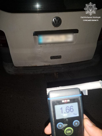 Під час перевірки документів з’ясувалося, що 19-річний водій не має права керування транспортними засобами. Крім того, у нього були явні ознаки алкогольного сп’яніння. Огляд на місці за допомогою приладу Драгер підтвердив це — результат становив 1,66 проміле.