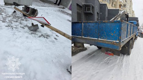Патрульні отримали повідомлення про автопригоду на вулиці Металургів. Очевидець ДТП повідомив, що водій вантажного автомобіля ЗІЛ, рухаючись заднім ходом, наїхав на опору лінії електропередачі та залишив місце події.