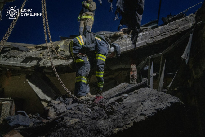 Після ліквідації всіх осередків горіння, фахівці ДСНС приступили до демонтажу аварійних конструкцій та великогабаритних пошкоджених плит.
