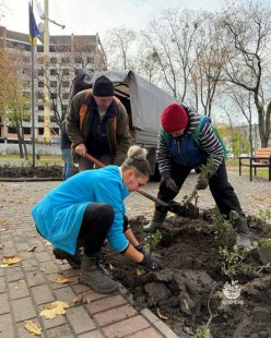 Працівники КП «Зеленбуд» висадили в сквері Героїв 3-ої окремої штурмової бригади (3 ОШБр) 150 троянд, які передали квітникарі з Одеси.