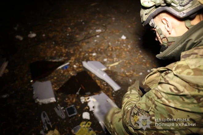Правоохоронці фіксують наслідки влучання російського БпЛА по цивільній інфраструктурі в обласному центрі.