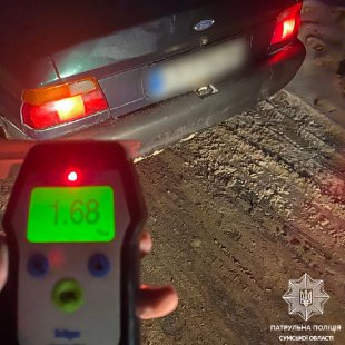 Під час перевірки документів поліцейські встановили, що 37-річний керманич не має посвідчення водія та взагалі ніколи його не отримував. Окрім цього, чоловік перебував у стані алкогольного сп’яніння. Огляд, який водій пройшов на місці зупинки за допомогою приладу Драгер, це підтвердив. Результат — 1,68 проміле алкоголю.